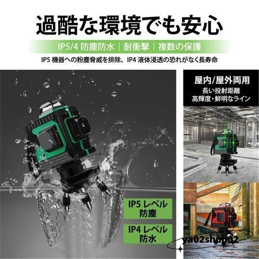 墨出し器 水平器 12ライン 8ライン グリーン 赤色 レーザー 三脚付 クロスラインレーザー 自動補正機能 高輝度 高精度 360°4方向