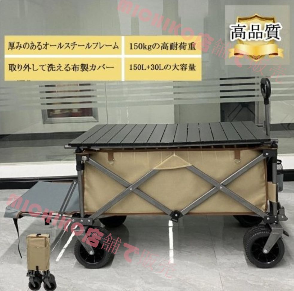 キャリーワゴン キャリーカート カバーテーブル付き ワイドタイヤ ブレーキ付き カーキ