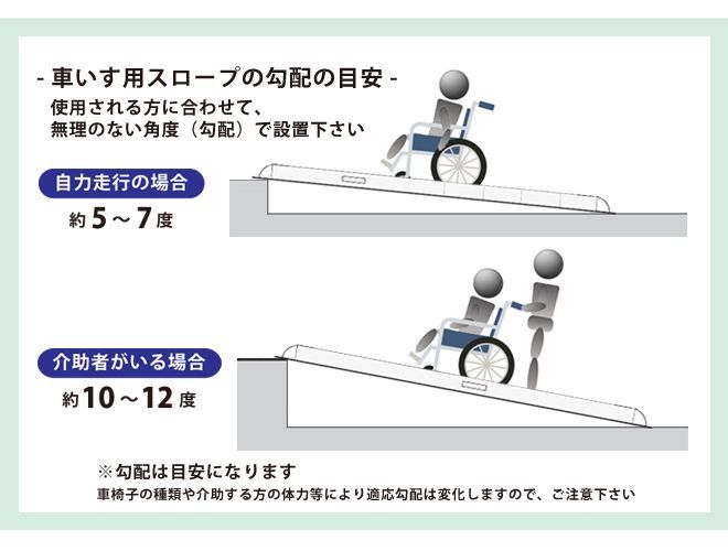 ・アルミスロープの扱いは本体重量をよく確認してお使いください