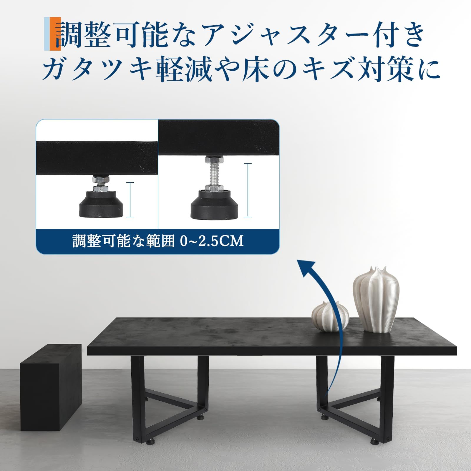 【脚用ゴムパット付属】床のキズ防止対策に床との摩擦を軽減させ、床の傷や引きずり音を防ぎます。