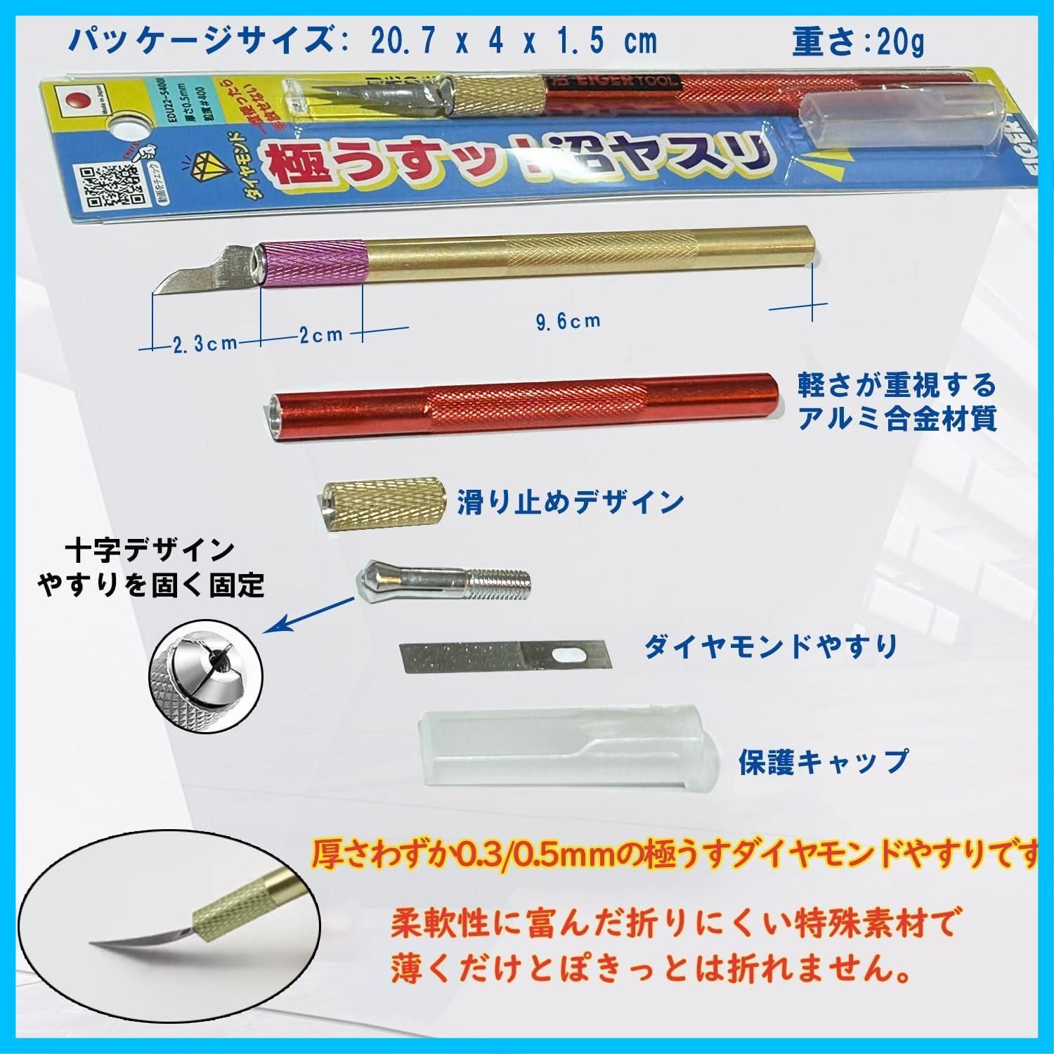 沼ヤスリ 0.3mm 0.5mm 超硬 極薄 ヤスリ シャープナー ペン型 ダイヤモンド電着ヤスリ アイガーツール ヤスリ ホビー用ヤスリ バリ取り 金属 木工 鉄工用 やすりセット DIY プラモデル 工具 研磨ツール シャーペンヤスリ 日本製 (EDU22-3800F 厚さ0.3mm)