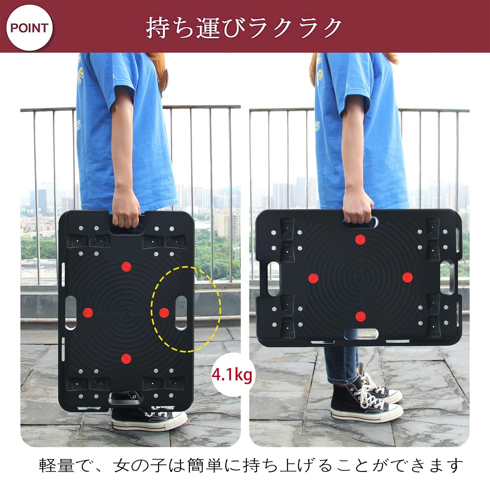 2台の プラットフォーム車スタック な台車縦横リンク耐荷重300 kg家庭用カート360°回転ブラック 2 Uholan ブラック