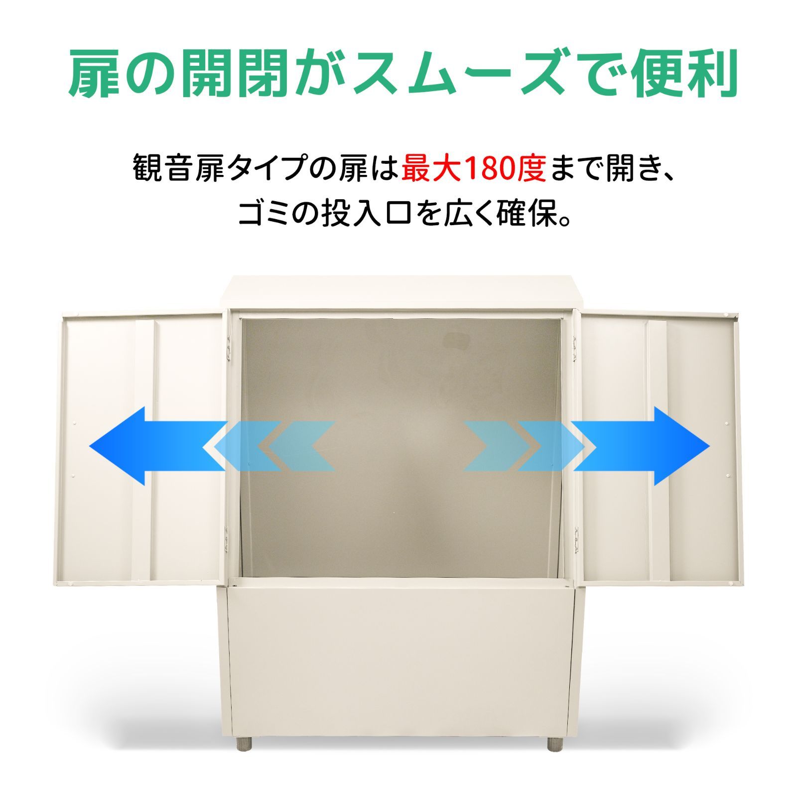 •【使いやすい口】観音扉タイプの扉は最大180度まで開き、ゴミの投入口を広く確保。ゴミの投棄が簡単で、扉が全開にできるため、中身の確認やゴミの取り出しもスムーズに行えます。ダンポール等もサッと入れてパッと出せるので使いやすい!重たい雑誌等も出し入れ簡単!