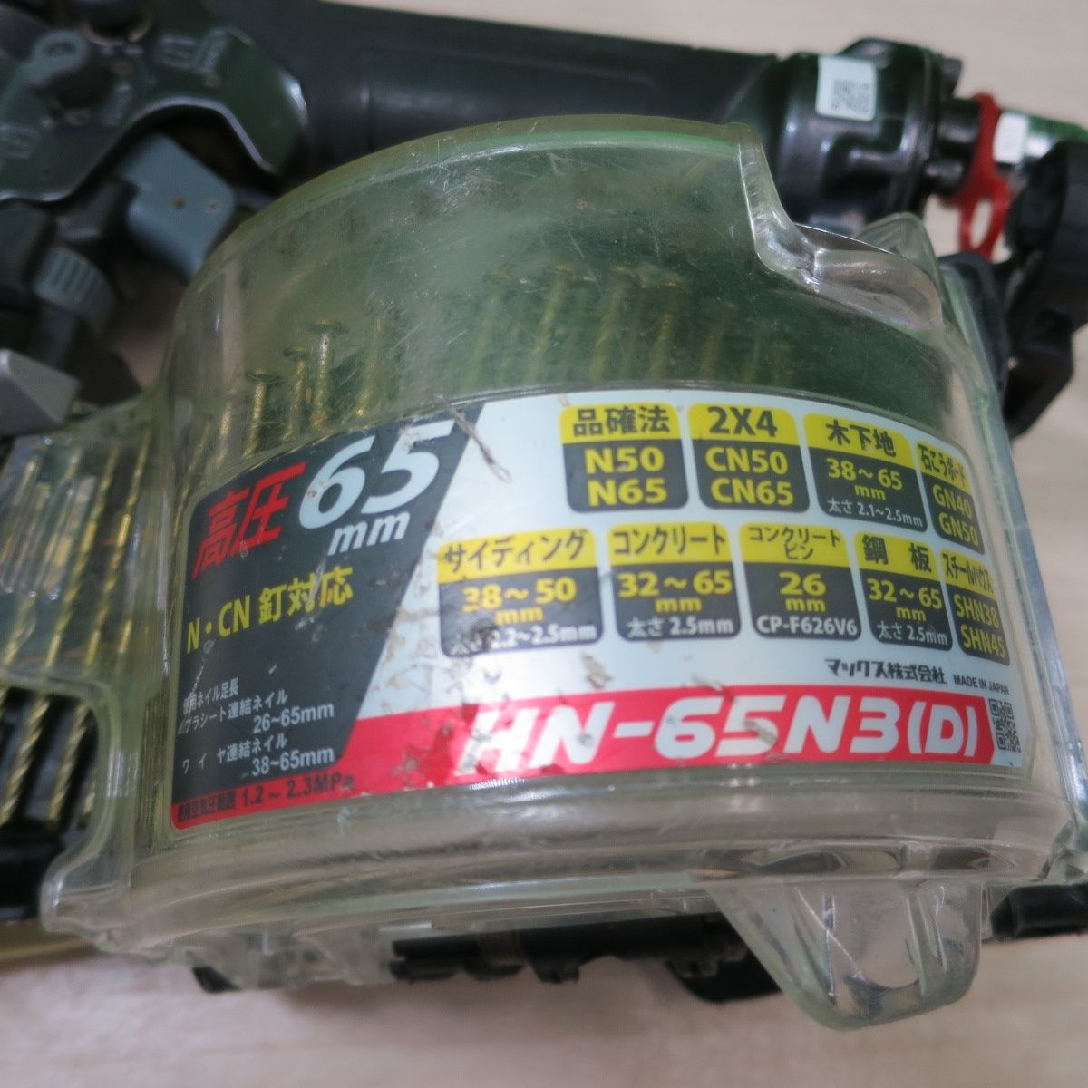 付き MAX 高圧 65 mm マックス 釘打機 スーパーネイラ HN-65 N 3 D 釘打ち機 コイルネイラ