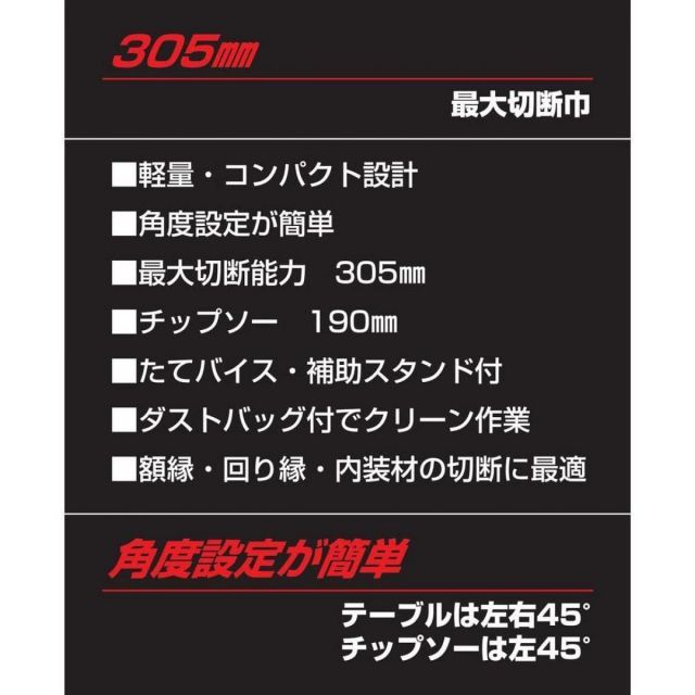 ●刃物寸法:外径190mm×内径20mm×刃数72Pノコ刃傾斜角度:0°~左45°