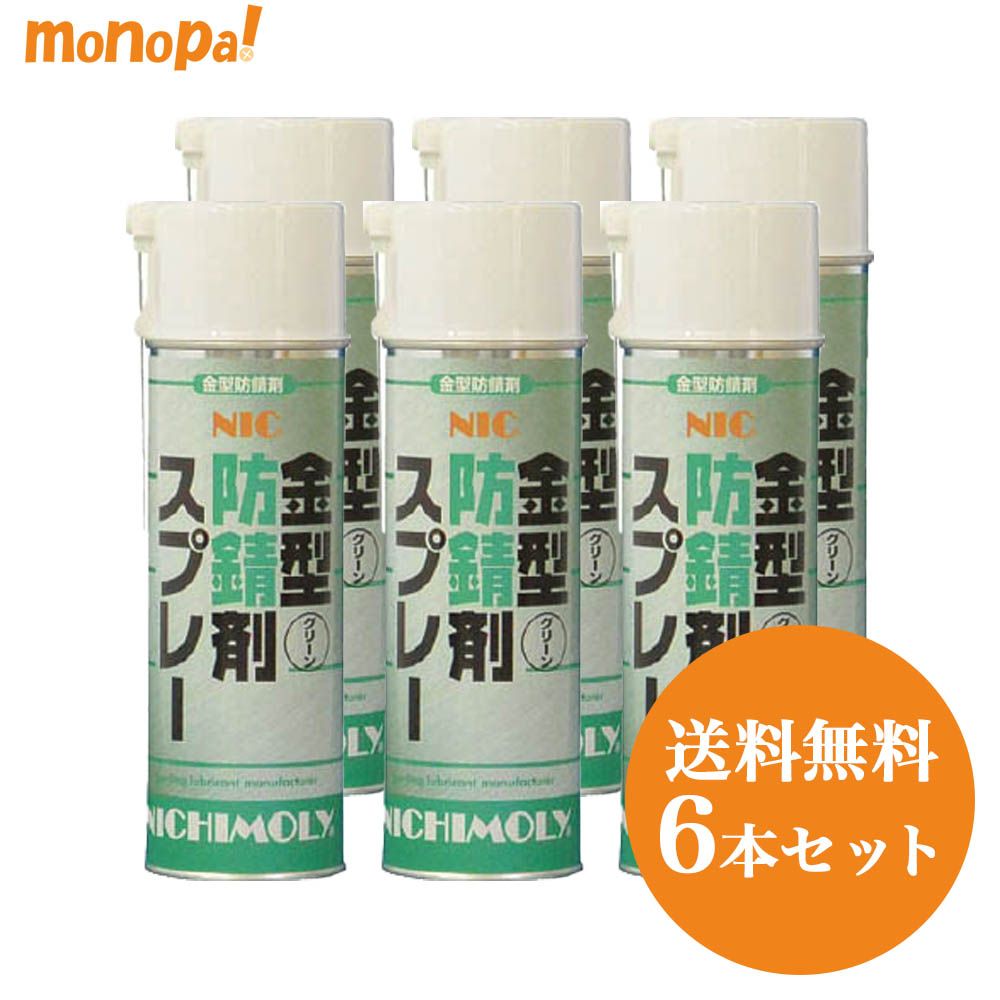 ニチモリ NIC金型防錆剤スプレー グリーン 480 ml 6本セット 水置換性 逆さ吹きOK 有色タイプ エアゾール