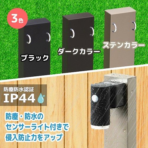 エクステリア 屋外 照明 ライト コーナーポール 明暗センサ 明るさセンサーライト ポールライト ガーデンライト LED 電球色 黒色 DIY 不正侵入 アルミ製