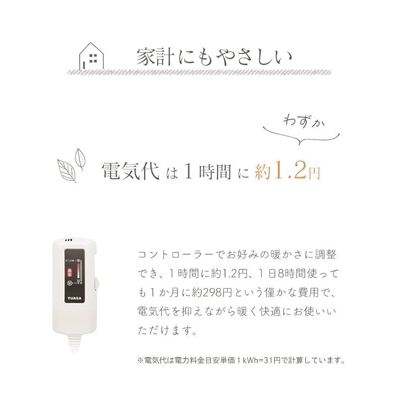 【製品仕様】製品サイズ:(約)縦110×横70cm、定格電圧:AC100V、定格周波数:50/60Hz、重量:約1.1kg、定格消費電力:40W、消費電力量:「強」約40Wh / 「適温」約25Wh / 「弱」約5Wh、表面温度:「強」約40℃ / 「適温」約33℃ / 「弱」約21℃、本体材質:表面 ポリエステル100%(パイル長10mm)、発熱布:ポリエステル100%、裏面:ポリエステル100%、電源コード長:電源側 約1.96m / 本体側 約0.65m