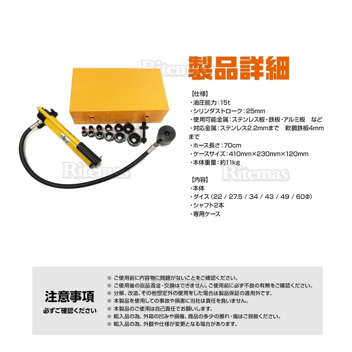油圧パンチャー 手動 15 t ダイス セット付き 油圧工具 パンチャー 油圧 パンチャ ステンレス板 鉄板 穴あけ 工具