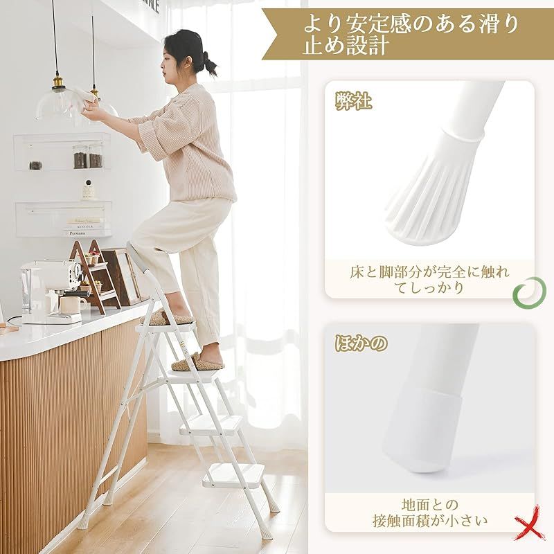 商品名:XinSunho 脚立 4段 折りたたみ 踏み台 おしゃれ 滑り止め 安全 耐荷重200KG 家庭用 ステップ 台 コンパクト 洗車台 引っ越し 屋内 大掃除