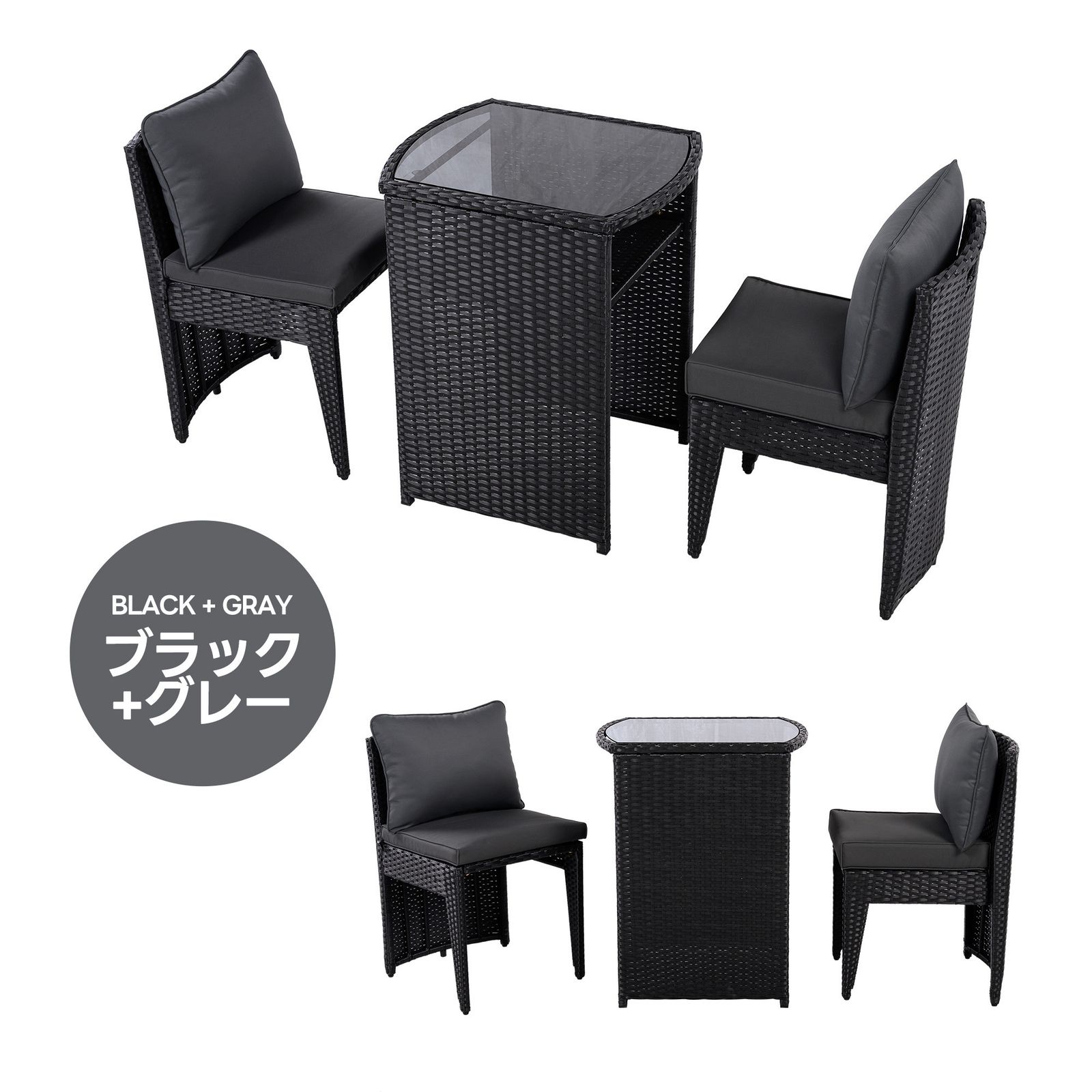 ガーデンファニチャーセット 3点セット ラタン調 コンバクト収納 撥水加工 省スペース 耐久性 北欧
