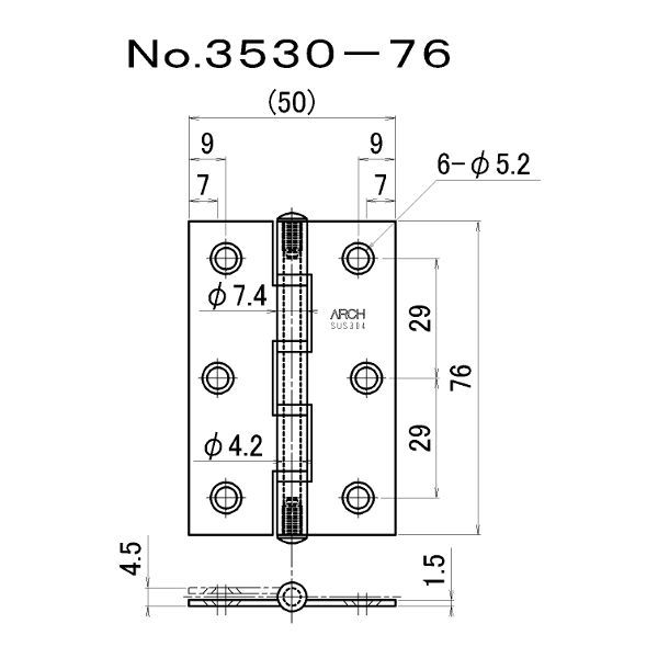 ●特徴:ステンレス製の厚口丁番です。ARCH印の丁番です!