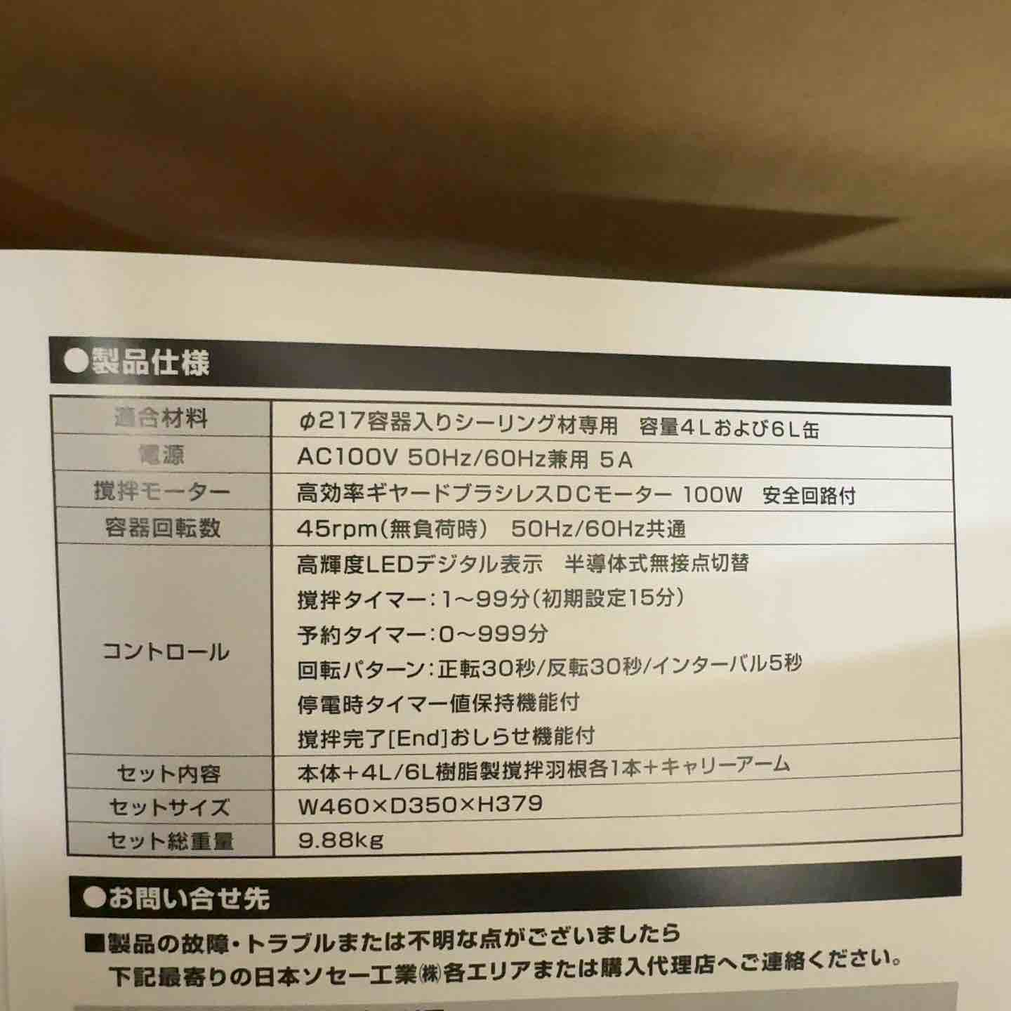 なパドルセット品 日本ソセー シーリング材用撹拌機 カルマゼ
