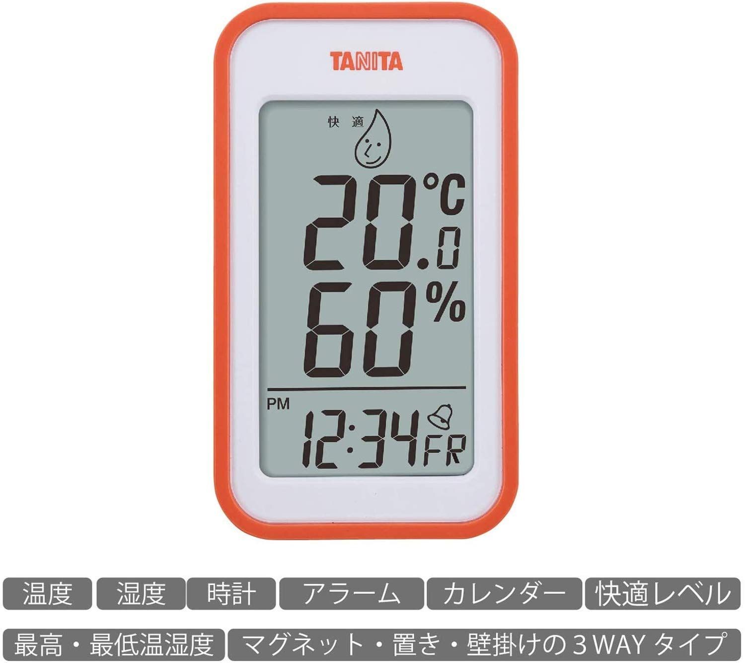 在庫 TT-559 オレンジ マグネット 卓上 OR 壁掛け デジタル 湿度 温度 アラーム カレンダー 時計 温湿度計 タニタ