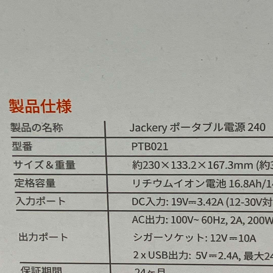 こちらは「Jackery PTB021 ポータブル電源 240Wh/200W ポータブルバッテリー 防災 アウトドア ジャクリ 未使用 」でございます。
