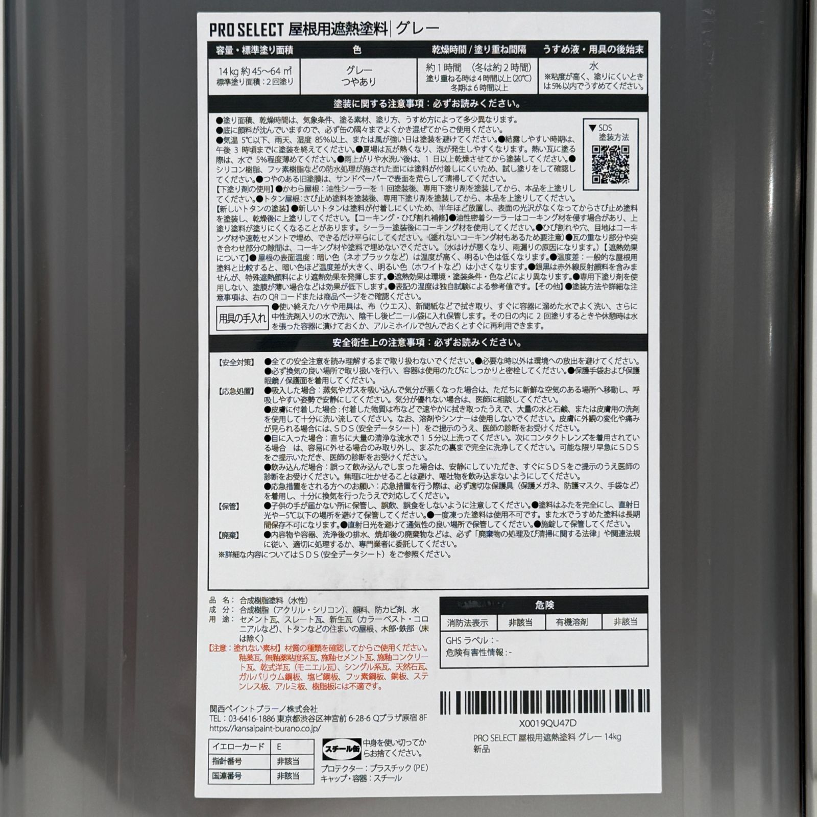 訳アリ PRO SELECT 屋根用遮熱塗料 グレー 14 kg 水性 つやあり 400005-101-104-B 01