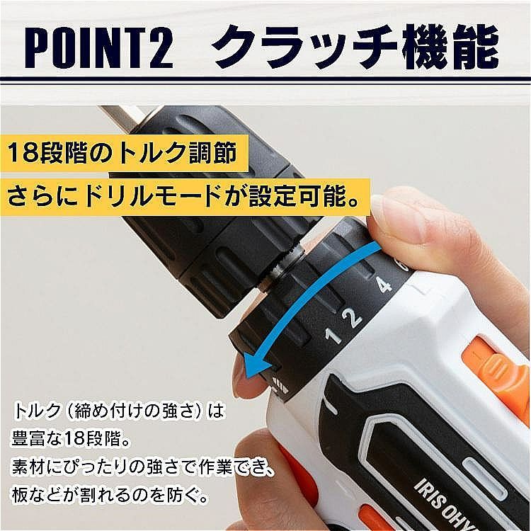 POINT2 クラッチ機能クラッチ機能で13段階のトルク調節が可能。