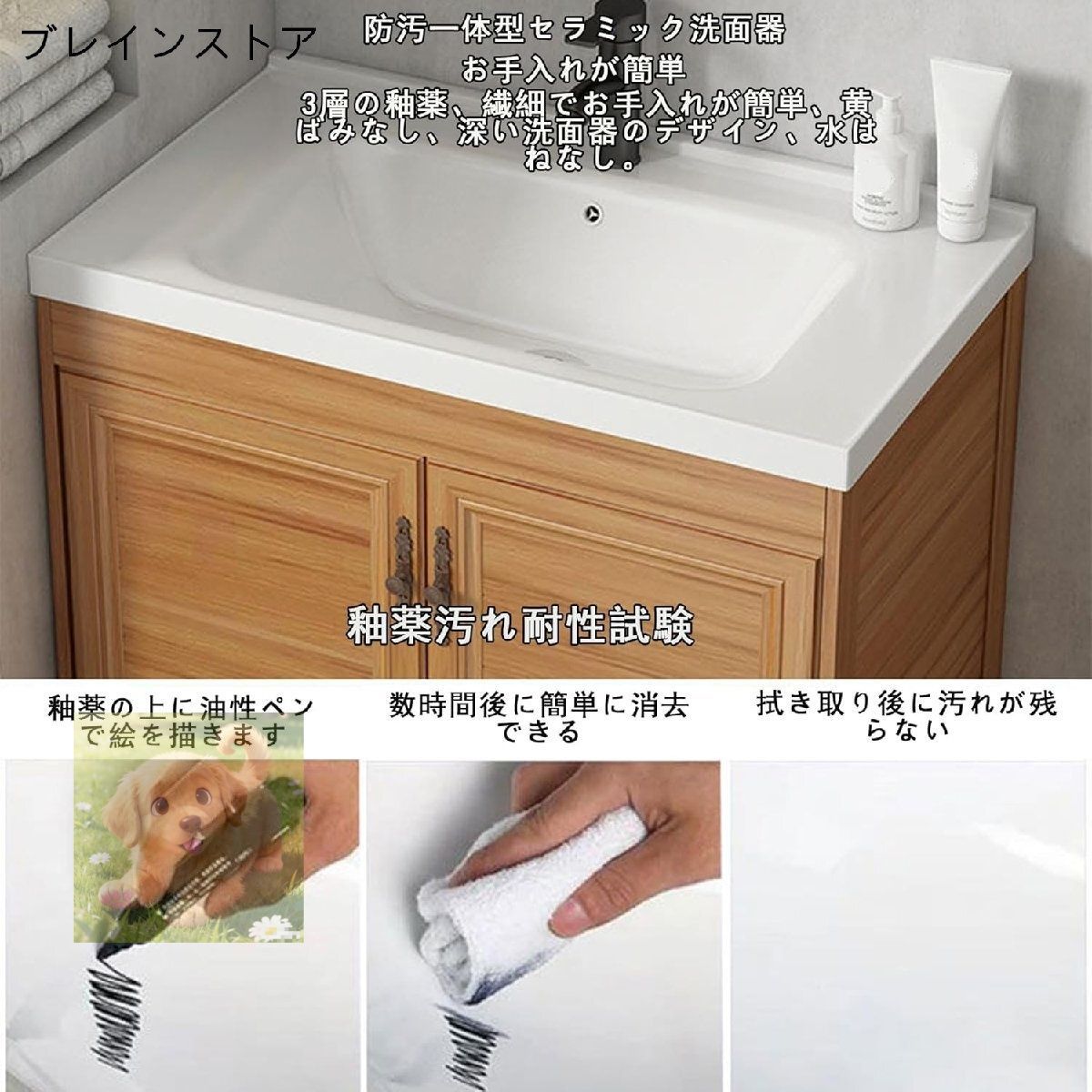 4. 防汚一体型セラミック洗面器でお手入れが簡単3層の釉薬、繊細でお手入れが簡単、黄ばみなし、深い洗面器のデザイン、水はねなし製品パラメータ商品名:洗面器セット洗面化粧台洗面台リフォーム洗面 化粧台洗面台 棚洗面 器 台セラミック 洗面器製品サイズ:、60x40x80cm、製品材質:セラミック+スペースアルミニウムカウンタートップのタイプ: 一体型セラミック洗面器色: ウォールナット適用環境:和洋問わずオフィス、カフェ、レストラン、ホテル、トイレ、浴室など様々な場所で使える洗面ボウルです すっきりとしたトイレ空間をお望みの方におすすめですパッケージ内容:シンク×1ブラケット×1蛇口×1給水パイプ×1下水道管×1コネクタ×2取り付け工具×1知らせ:寸法はすべて手作業で測定されており、実際の製品によっては誤差が約1~2cmです