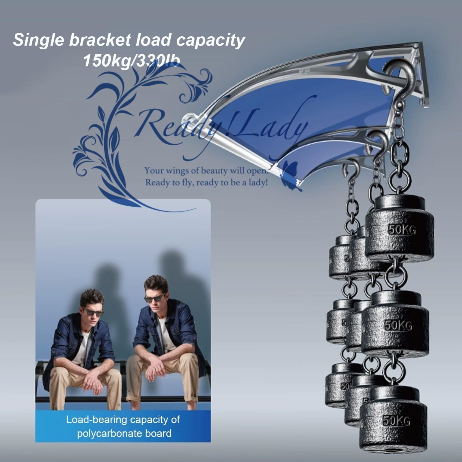 【高品質素材】日よけはポリカーボネートシートで作られており、強力な耐衝撃性、落下物の効果的なブロック、日焼け防止、耐候性、難燃性、防音性があります。