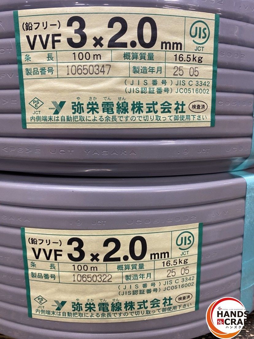 弥栄 VVF .0 mm×2巻 伝票直貼り 製造より1年以内のものを発送します ハンズクラフト久留米上津BP店