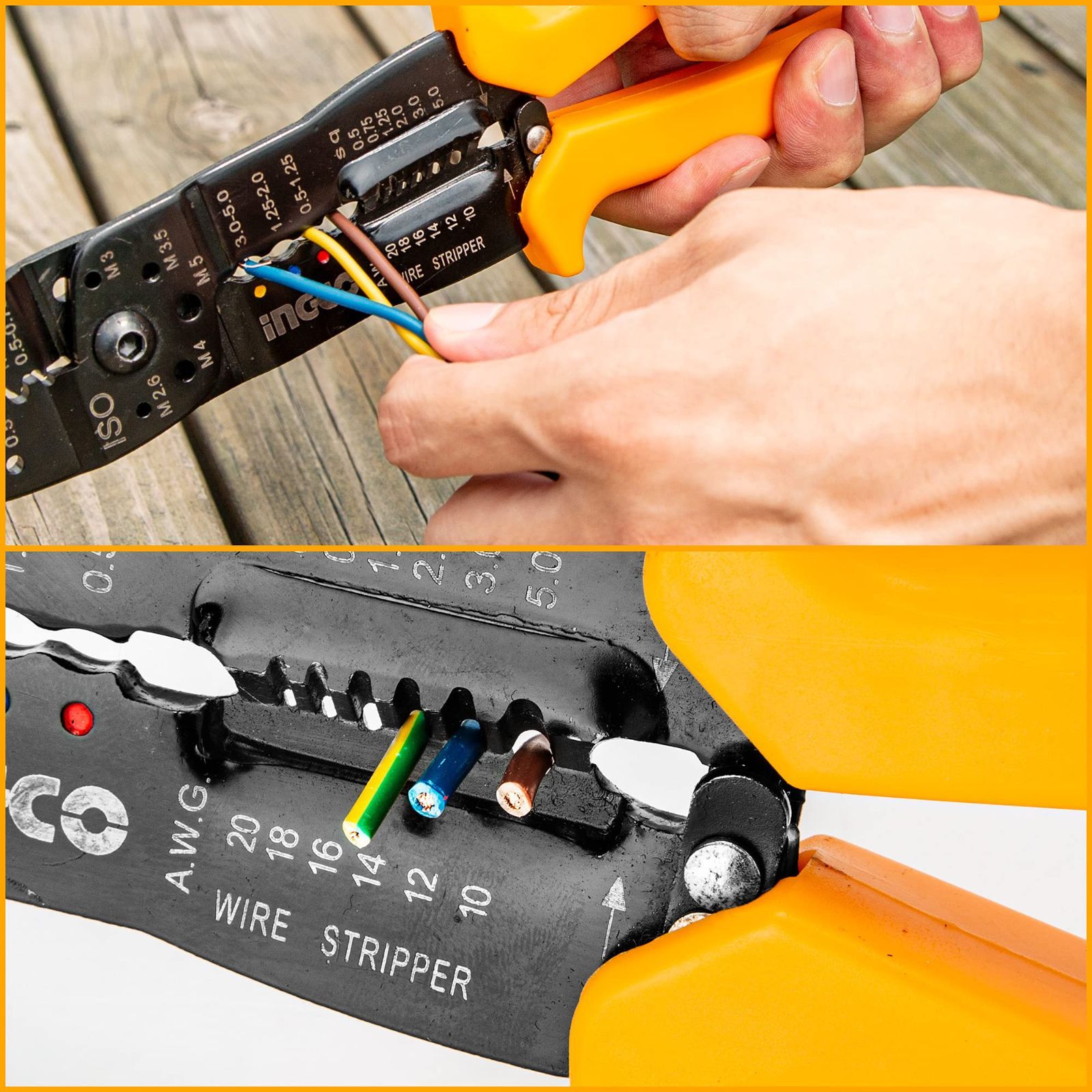 INGCO ワイヤーストリッパー 電工ペンチ ケーブルストリッパー 電線カッター HWSP101