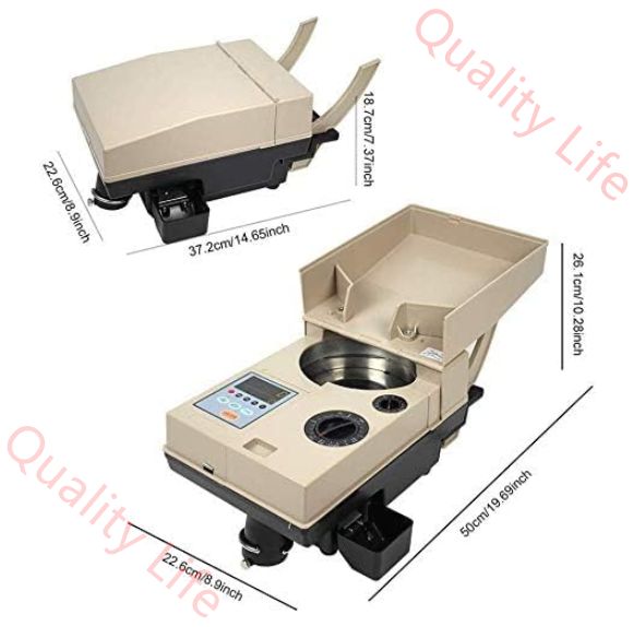 1、硬貨計数機:高速カウント:1500枚/分、最大カウント範囲:1~99999枚、プリセットカウント範囲:1~9999枚。直径ノブと厚さノブにより、計数する硬貨の直径と厚さの範囲をカスタマイズ可能。対応硬貨直径範囲:15mm-34mm、対応硬貨厚さ範囲:1mm-3.4mm。500円、100円、50円、10円、5円、1円硬貨に対応。コイン収納ボックスには最大2000枚の硬貨を収容可能。パチンコメダルも計数可能。