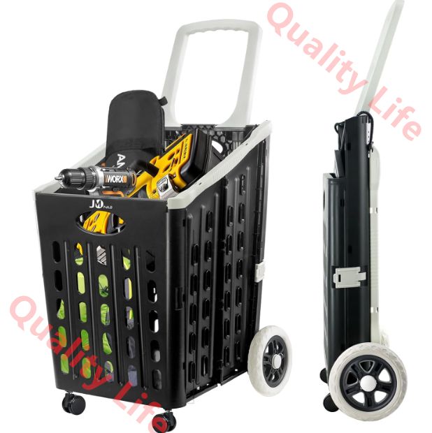 買い物用品、雑貨、衣類用のカートとして使用されるプラスチック製の折りたたみ式ショッピングカート。特大の後輪は取り外し可能で、道路上での安定性を確保し、前輪は 360° 回転できます。ベビーカーのハンドルは特別に設計されており(滑り止め、より耐久性があります)、多機能ショッピングカートは大人と子供の両方が使用できます。階段を登ることもできるので、労力と時間を節約できます。容量55.1ポンド