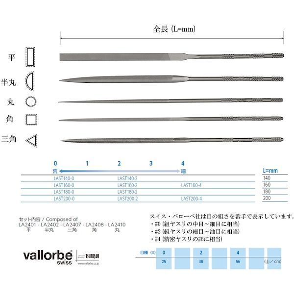 7営業日以内発送 バローベ LA-ST-200-0 精密ニードルヤスリ 5種セット 200mm #0 販売不可