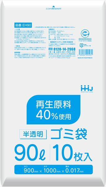 -60点セット EH90 再生原料40%入 90L 半透明 ハウスホールドジャパン 包装 梱包