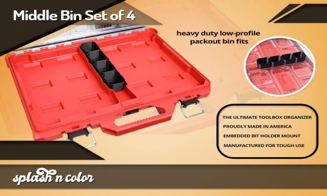 カラー:ブラック◆商品名:SplashNColorMilwaukeePackout薄型ツールボックスオーガナイザーミドルビンセット-高耐久モジュラーストレージシステム-ブラックプラスチック-4個