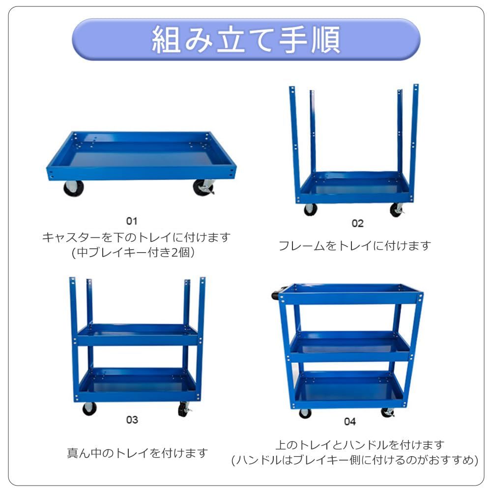 【幅広い用途】ツールカートの中段は、高さを自由に調整できるため、小さな部品や工具はもちろん、少し大きな部品の収納・整理にも役立ちます。移動が簡単で、工場、倉庫、イベント、アウトドアなど、さまざまな場所で使用可能です。自動車修理やガレージ、庭にも最適です。