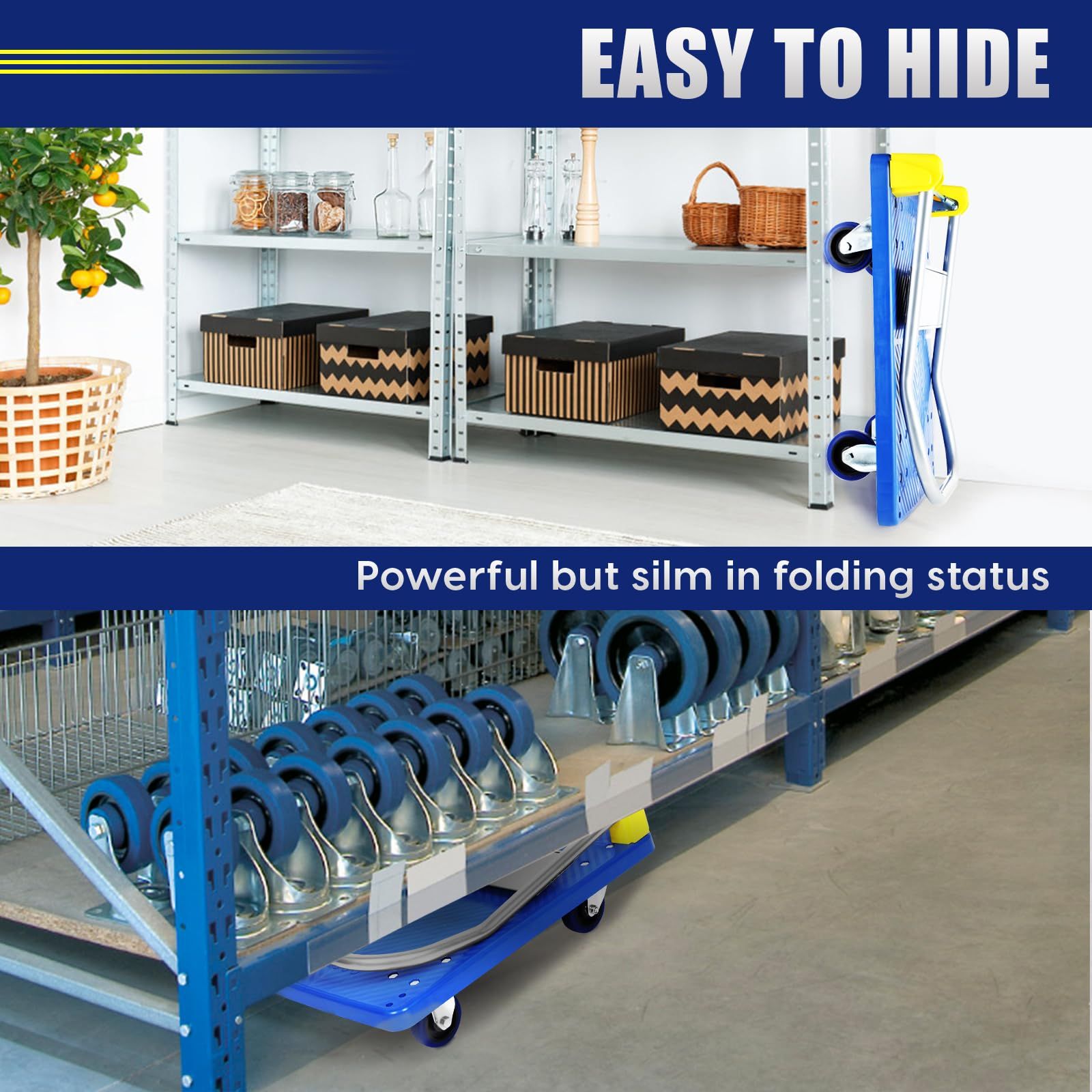 YSSOA台車 折りたたみ プラットフォーム トラック 幅70×奥行50 cm 約 耐荷重200 KG 360度回転ホイール付き 積み込みと保管用の折りたたみ式プッシュハンドカート 手押し台車 スチール製 静音ホイールを備え