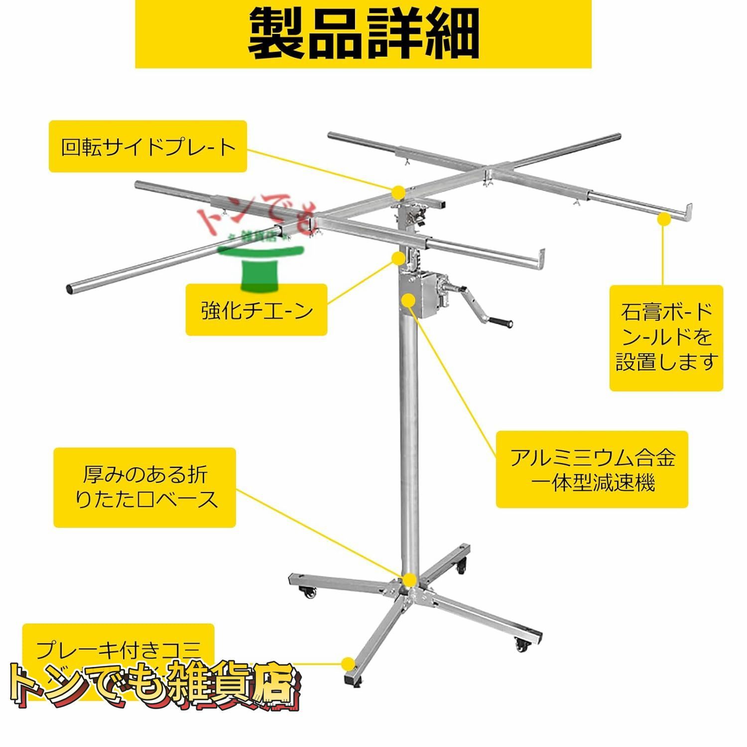 【高品質素材】ドライウォールリフト頑丈なステンレス鋼で作られており、構造は安定していて信頼性が高く、頑丈で耐久性があります。安全かつ安定して機械を持ち上げることができ、より安心して使用できます。