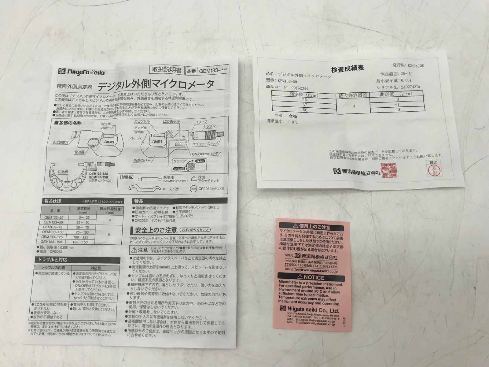 〇SK 新潟精機 デジタル外側マイクロメータ QEM 133-50 エコツール小牧インター店 M 02