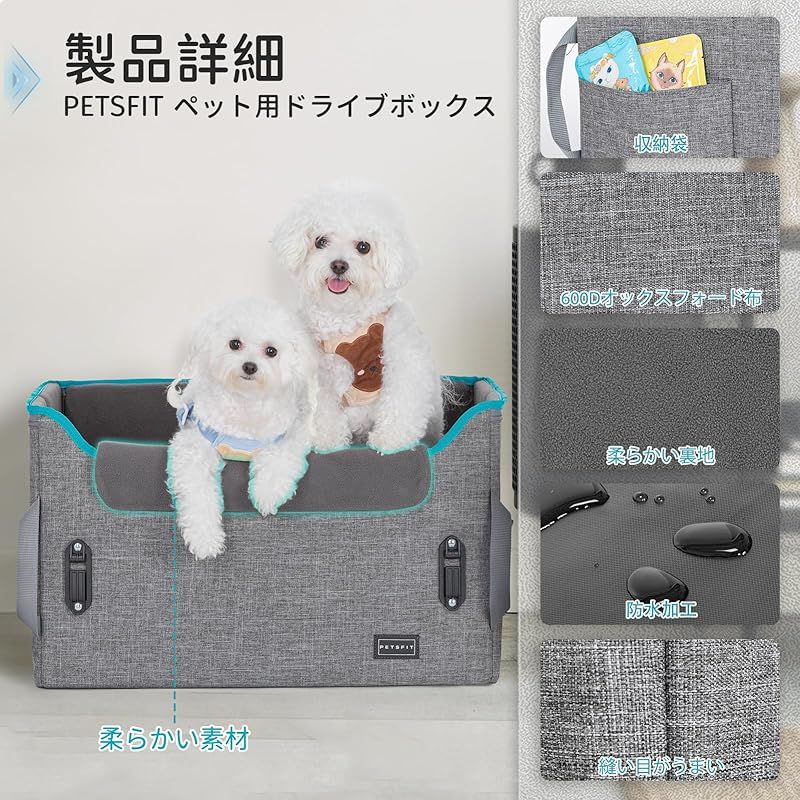商品名:Petsfit ペットドライブボックス ドライブボックス 犬 「座り台が高さ調節できるタイプ」 ドライブシート 車 カーシート 安定 コンパクト 飛び出し防止 折り畳み可能 しっかり 省スペース オックスフォード布 型崩れ防止 助手席 後部席 Lサイズ グレー