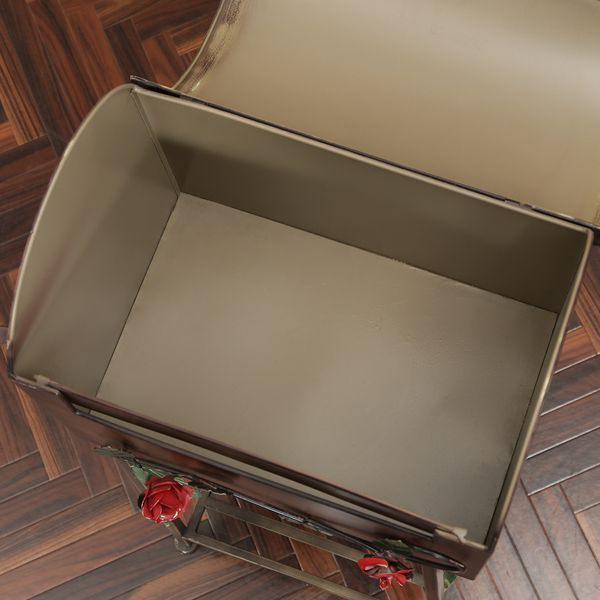 華やかなローズの装飾が目を引く、アンティーク加工のデザイン。滑らかな曲線が高級感を漂わせます。投函口は幅30cm×高さ4cmとゆとりのサイズ感。新聞はもちろん、定型郵便サイズの封筒なども受け取り可能です。上部が大きく開閉するので取り出しやすく、幅37×奥行24×高さ23cmと、郵便物が溜まっても充分なスペースがあります。サイドには南京錠をつけられる通し穴が付いていて、大事な荷物を守ります。お花やグリーンを飾って素敵な空間にアレンジできます。壁に穴を開けたりする必要がなく、好きな場所に立てるだけで簡単にご使用頂けます。玄関の装飾オブジェや収納としても◎