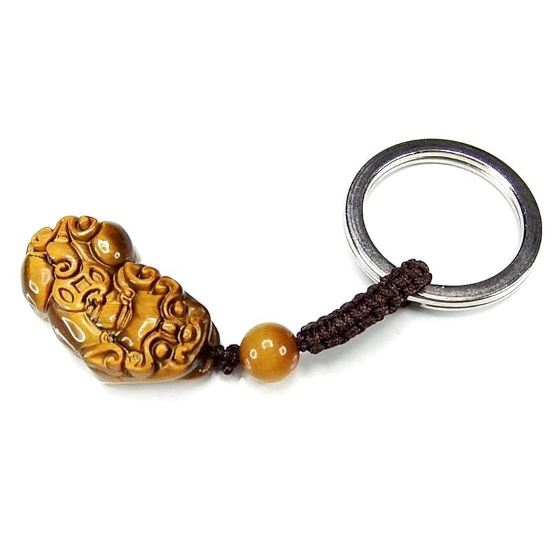 石街 天然石 ヒキュウ 彫り キーホルダー AAタイガーアイ中型 金運 仕事運