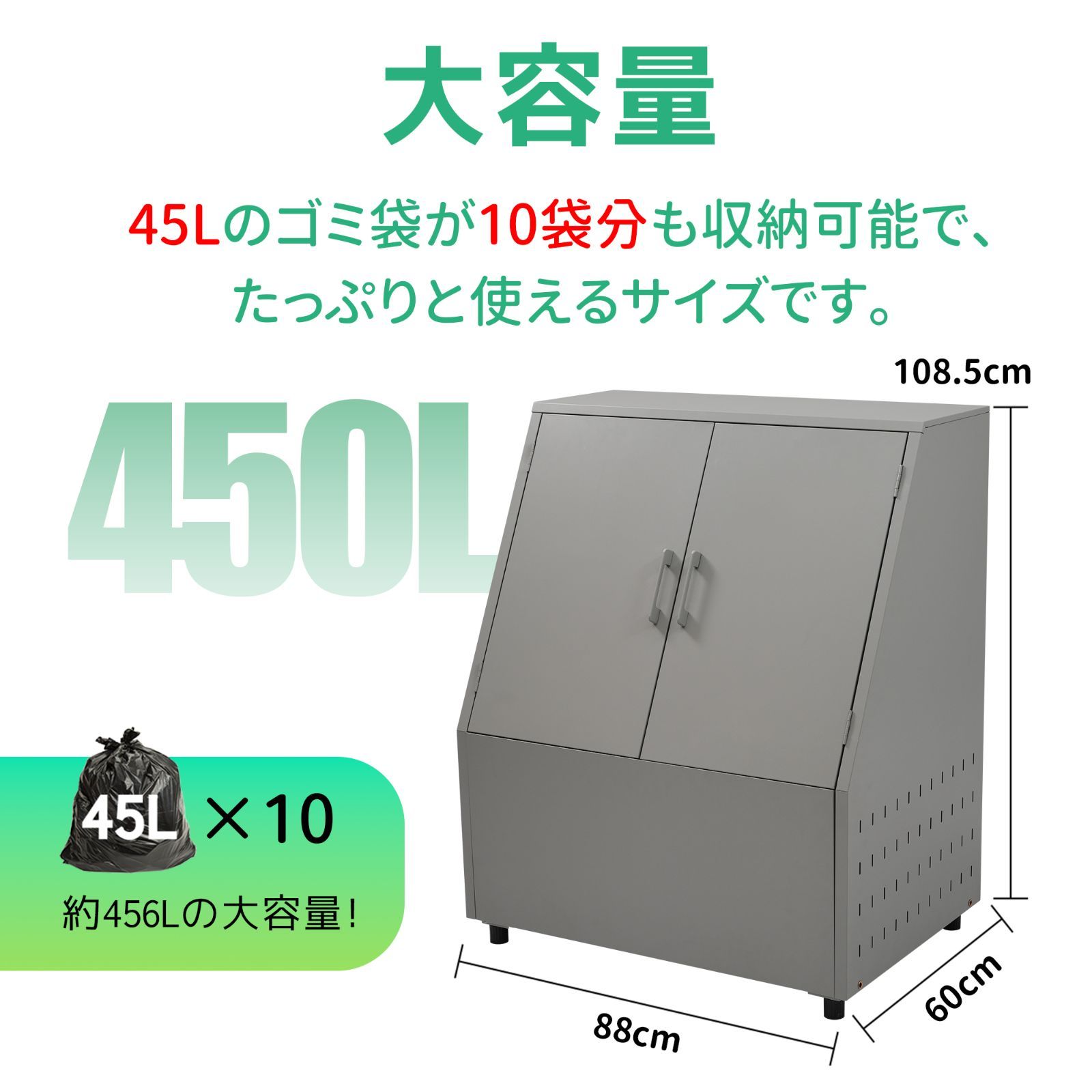 夏場のゴミ置き場対策 450 L 大型屋外ゴミ収納庫 幅88 奥行60 高さ108.5 ゴミストッカー 大容量 物置 屋外収納庫 ゴミボックス 倉庫 DIY 頑丈 ボンデ鋼板 ごみ収納庫 家庭用