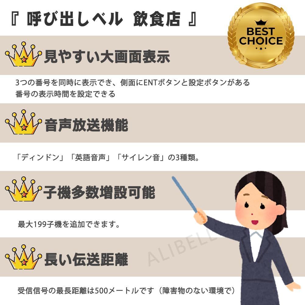 ALIBELL 呼び鈴 ワイヤレス 飲食店 呼び鈴 飲食 店 業務 用 呼び出し ベル オーダーコール ワイヤレス チャイム 介護呼び出しベル コードレス チャイム 飲食店 居酒屋 焼肉屋 介護施設 病院