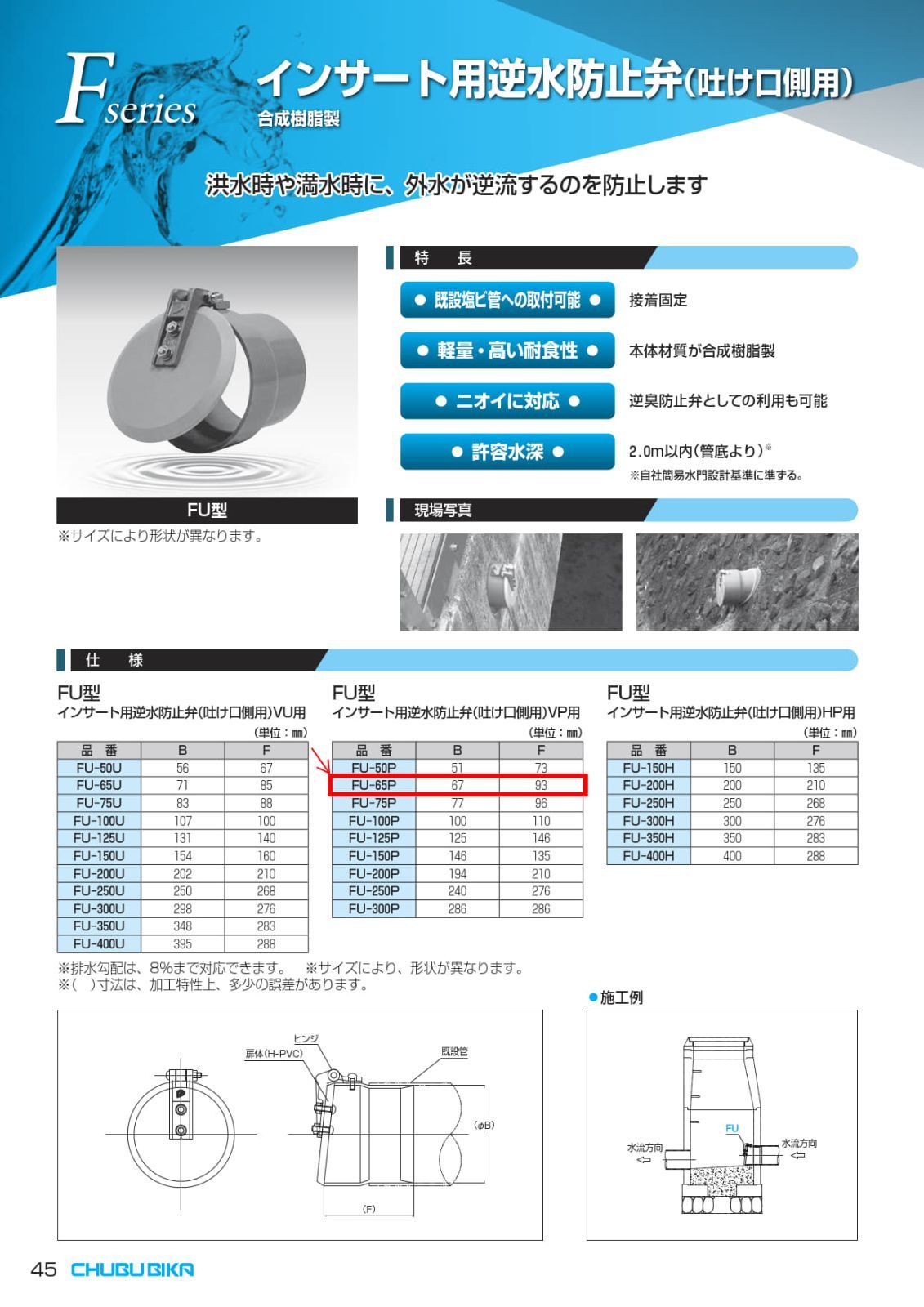 インサート用逆水防止弁 吐け口側用 VP用 FU-65 P 中部美化企業
