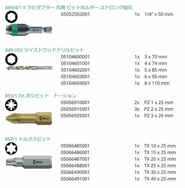 Wera 1 4 ドリルビットセット 木工用 18点 ケース付849 855 867 18 Wood Twist Drill Bits and Set 104653