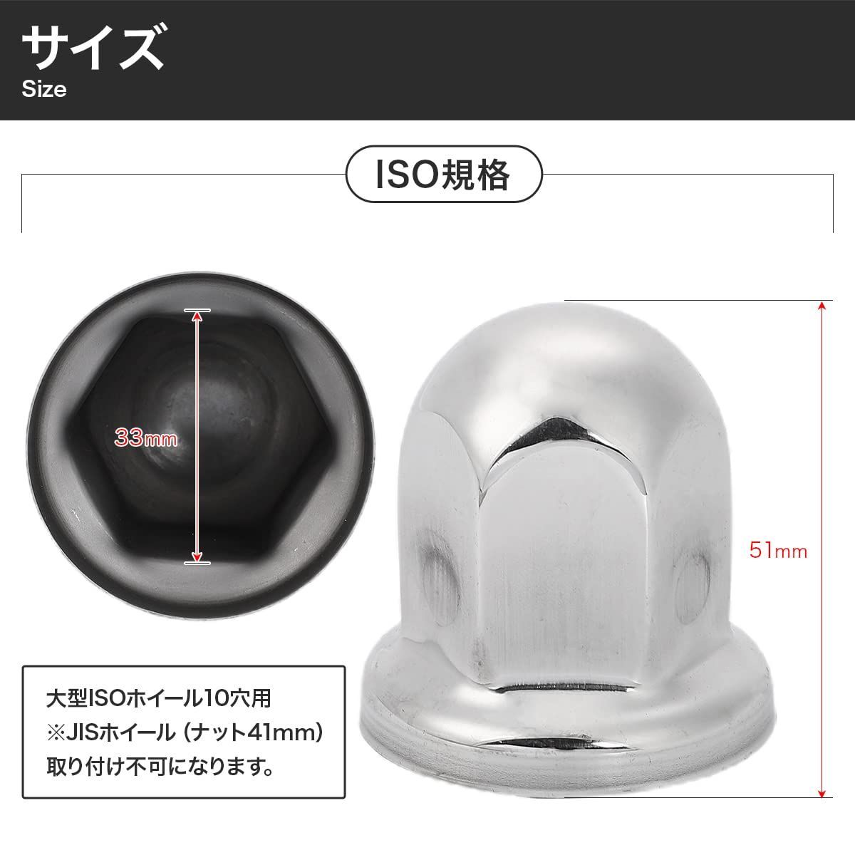 セット ミドル 高さ51 mm 33 ステンレス ISO 丸型 カバー 大型10穴用 キャップ デコトラ ナット 汎用 光沢が美しいナットキャップ