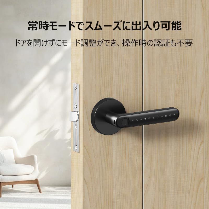 【指紋・暗証番号・カード・アプリ・物理キーの5通りの解錠方法】 指紋認証は高速かつ正確に読み取り、暗証番号やICカード、専用アプリ、カギにも対応しています。多彩な解錠方法で、家族やスタッフの利用シーンに応じて柔軟に運用できます。