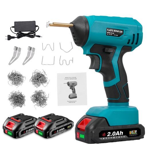 プラスチック溶接機コードレスプラリペアスポット溶接機ミニバンパー補修急速加熱最大400° C 4種400本の溶接釘付き自動車ひび割れ補修外側コーナー 内側コーナー ウェーブステープ