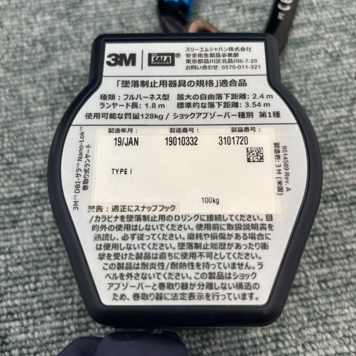 3 M フルハーネス型 巻取り式ランヤード ショックアブゾーバー 第一種 新規格 品