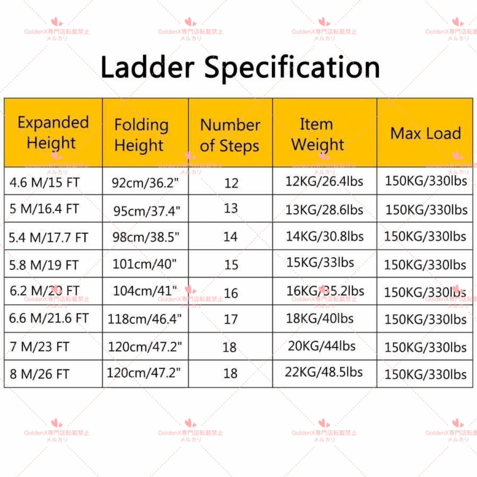 "脚立 伸縮 コンパクト 5m 6.2m 7m 8m 最長 伸縮はしご 取り外し可能なスイベルフック付き、 屋根裏部屋へのアクセス、SUVルーフおよびルーフ用のコンパク