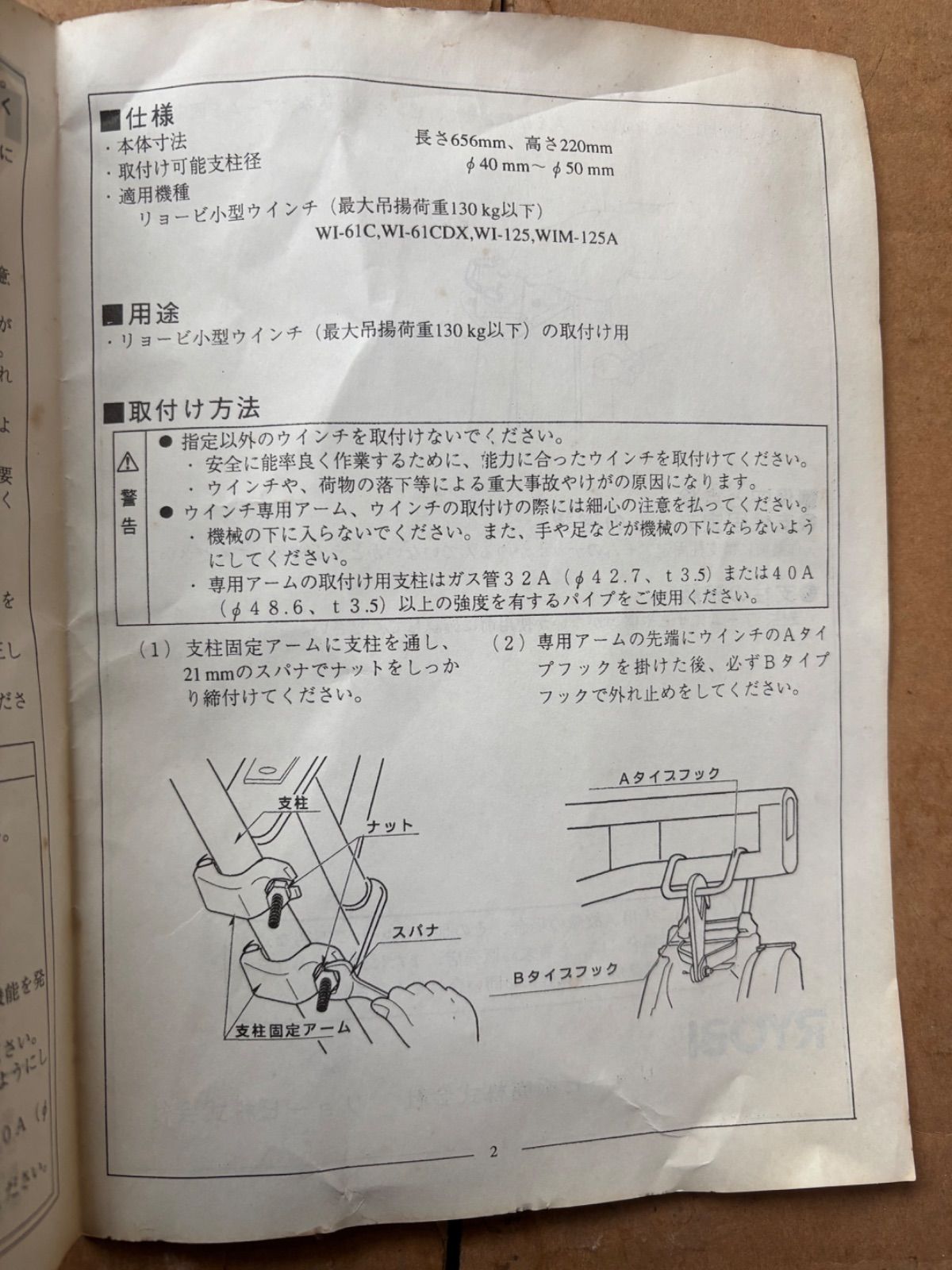 リョービ RYOBI 小型ウインチ アーム 685103 A 店舗 開封品