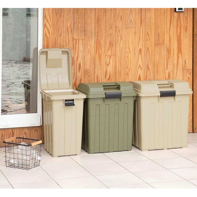 co.jp TONBO 新輝合成 Shinki Gosei トンボ ゴミ箱 ハンドル付 70リットル カーキベージュ カーキグリーン セット 幅49×奥行41.5×高さ62 cm 蓋付き 分別 丈夫 屋外 ベランダ 大きい アウトドア