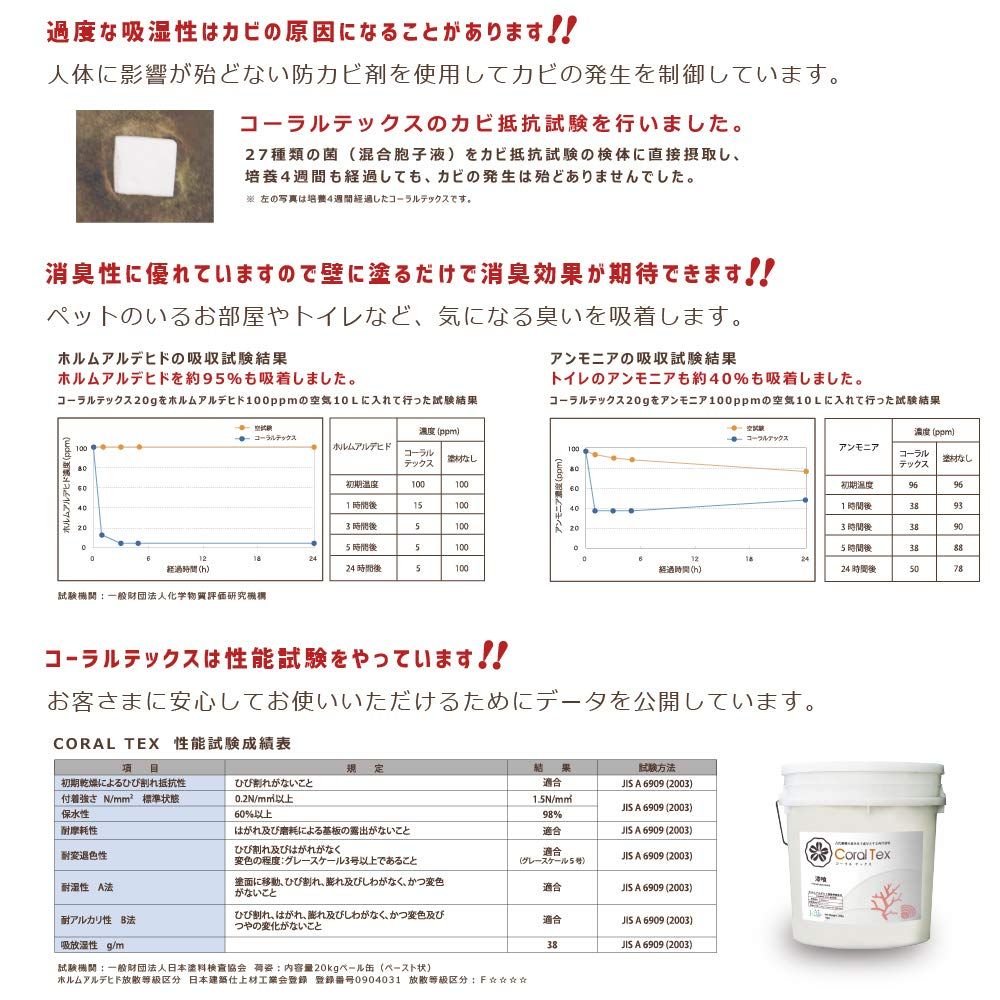 ローラーで塗りやすい改良タイプです。 コーラルテックスは、VOC(揮発性有機化合物)、有害重金属、ホルムアルデヒド、その他、環境・健康に有害な物質に関する規定を満たした先進のグリーンテクノロジーから生まれた製品です。古代珊瑚や貝殻などの堆積物から形成される天然素材炭酸カルシウムを主成分とする内装仕上げ材です。消石灰を含まないので塗る人にも優しく、安心して使用することが出来ます。室内環境における優れた耐久性、耐水性、接着性を持ち合わせています。ホルムアルデヒドやアンモニアの吸着性に優れ、ほどほどの調湿作用が期待できます。壁紙やビニールクロスへの塗布も可能でリフォームにも適しています。適応下地 : 石膏ボード、モルタル、コンクリート、ビニールクロス、壁紙 ローラー用 漆喰16kg ※ 専用の砂骨ローラーをご使用ください。