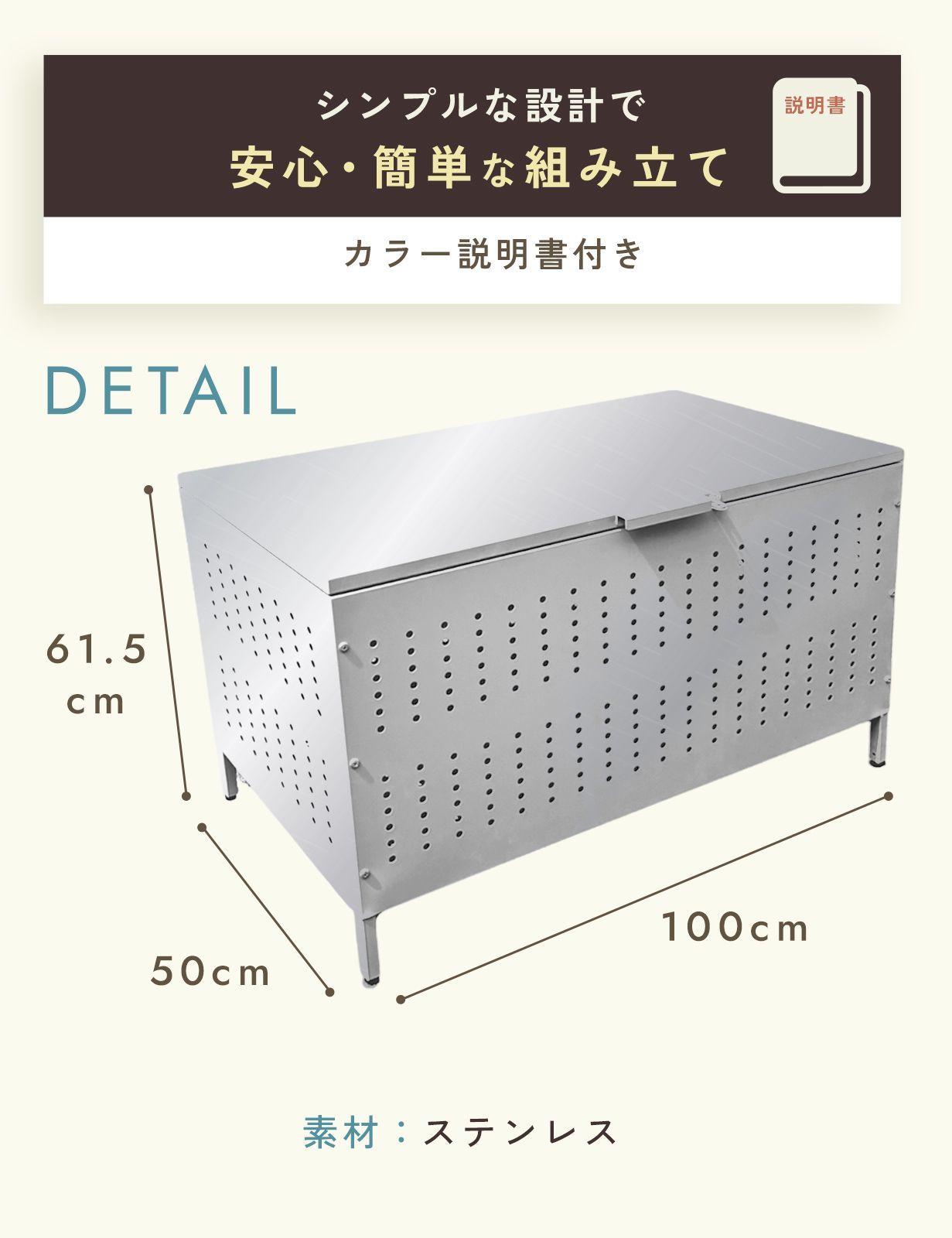 約(横)100×(奥)50×(高)61.5cm:45Lゴミ袋が4~6個入るサイズ感です。屋外常設可能